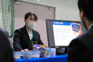 各ブースでは、それぞれの企業の担当者による会社説明や、仕事内容の簡単な体験が行われました。