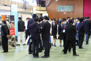 当日は真岡工業高校の体育館に28社の出展企業ブースが並び、会場内は活気に包まれました。