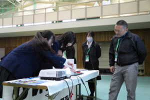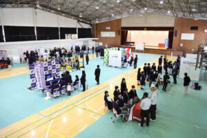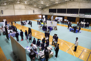 当日は那須拓陽高校の第一体育館と第二体育館に24社の出展企業ブースが並びました。