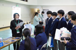 生徒たちは、あらかじめ割り振られた企業ブースを順番に訪問しました。